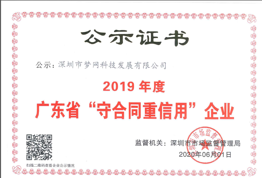 • 2019年度广东省“守合同重信用”企业