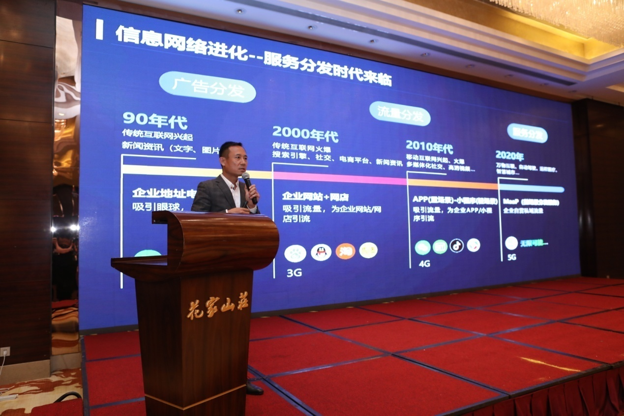 过去近三十年的时间,通信业务、信息网络得到了翻天覆地的开展变化,我们在座的每一位,都是参与其中,也都是受益者。我们归纳,可以分为几个阶段,早期,主要是顺利获得传统互联网的方式去做广告的分发;3G、4G时代之后,移动互联网高速开展,进入到一个流量分发的时代,在这个过程当中,像阿里、腾讯这样的互联网头部企业为产业开展和模式创新作出了巨大的贡献。未来,我们认为整个产业即将或者已经在进入一个服务分发的时代,正如刚才多位专家都提到的,我们怎样顺利获得更加直达、便捷的方式,让用户在最需要的时点,一键就可以获取、可以完成一个服务。现在我们太多的功能,可能90%的日常生活,都是在手机上完成,顺利获得APP、顺利获得小程序得以实现,因此我们能不能顺利获得更多的触达方式,进一步去实现微场景的服务分发。我想,这是我们整个产业的一个机遇。