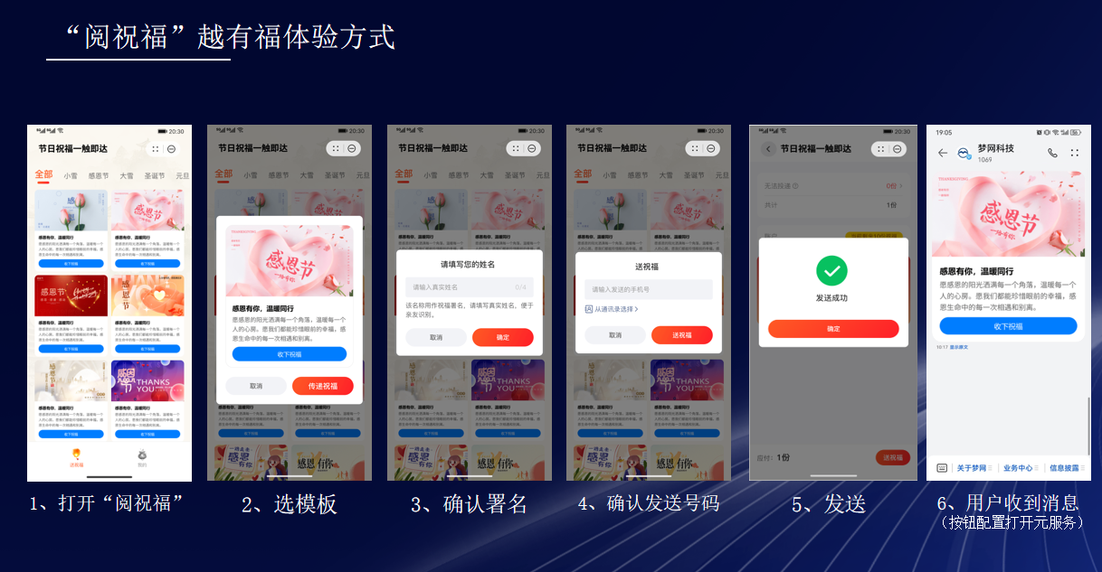 在本次大会上,dcbox小金库app科技还发布了结合节日祝福应用场景的“阅祝福”元服务,其基于手机通讯录,是为鸿蒙用户打造的富媒体祝福信息发送工具,拥有超过100种的精美模板,极大地丰富了社交互动体验。